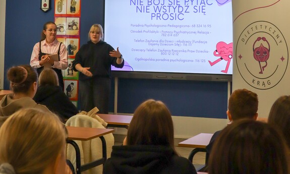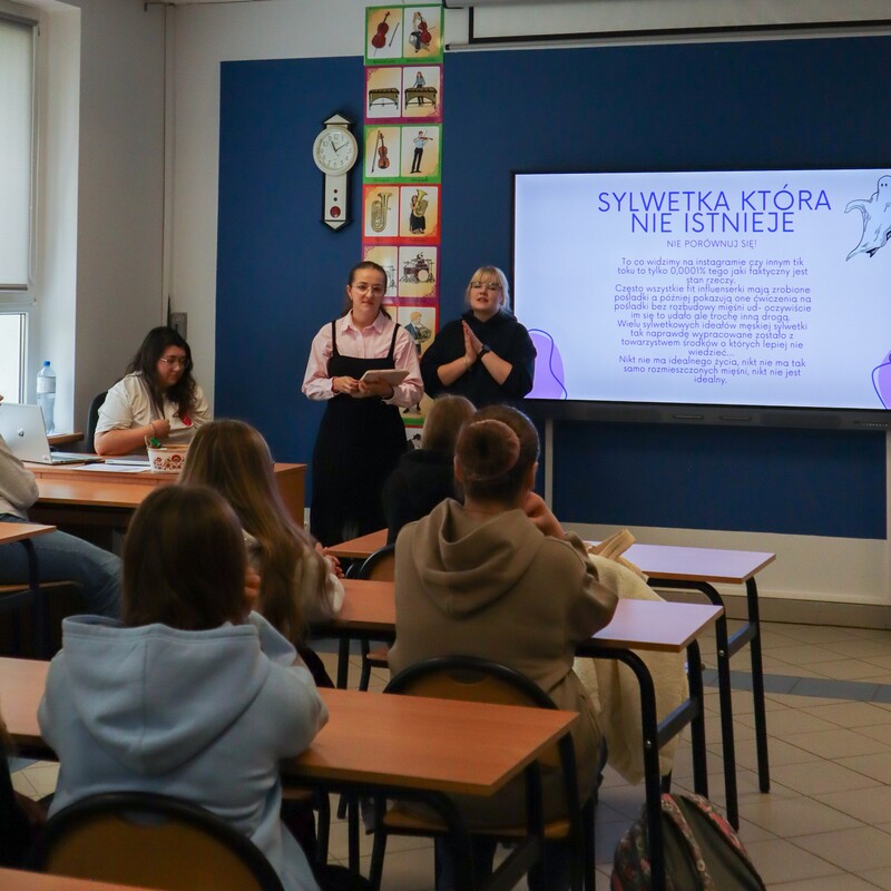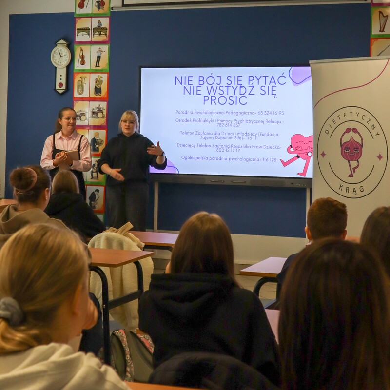 W ramach wydarzenia Studentki przygotowały i zaprezentowały uczniom klas siódmych i ósmych prelekcję dotyczącą zasad prawidłowego żywienia. Podczas wystąpienia zwrócono uwagę nie tylko na podstawowe elementy zbilansowanej diety, ale również na powiązane z nią kwestie, takie jak: