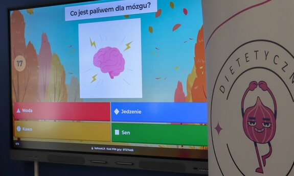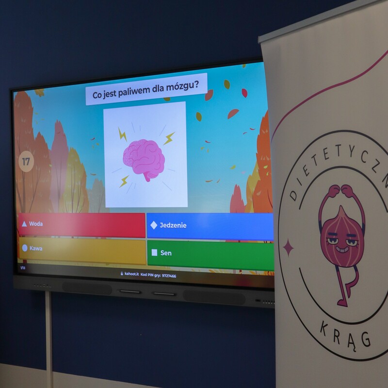Aby w atrakcyjny sposób utrwalić przekazane treści, Studentki przeprowadziły quiz wiedzy o żywieniu, który cieszył się dużym zainteresowaniem wśród młodzieży. Uczniowie wykazali się dużą wiedzą i zaangażowaniem, a trójka najlepszych uczestników otrzymała nagrody w postaci zdrowych przekąsek — orzechów i suszonych jabłek.